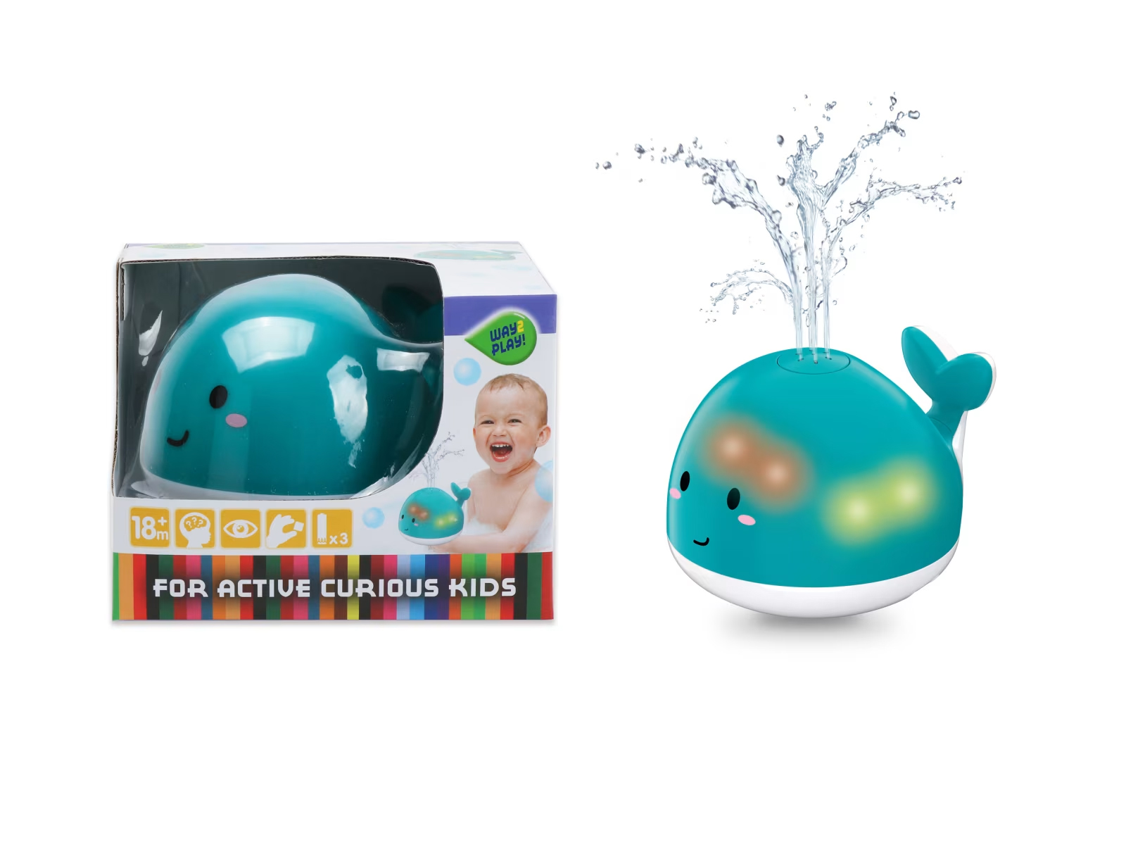Val som lyser och sprutar upp vatten när man lägger den i vatten. – perfekt badkarslek eller i plaskpoolen för de mindre barnen.
