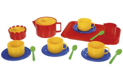 Kaffeservis med 18 delar. Tål diskmaskin, Tillverkad av material godkända för kontakt med livsmedel.