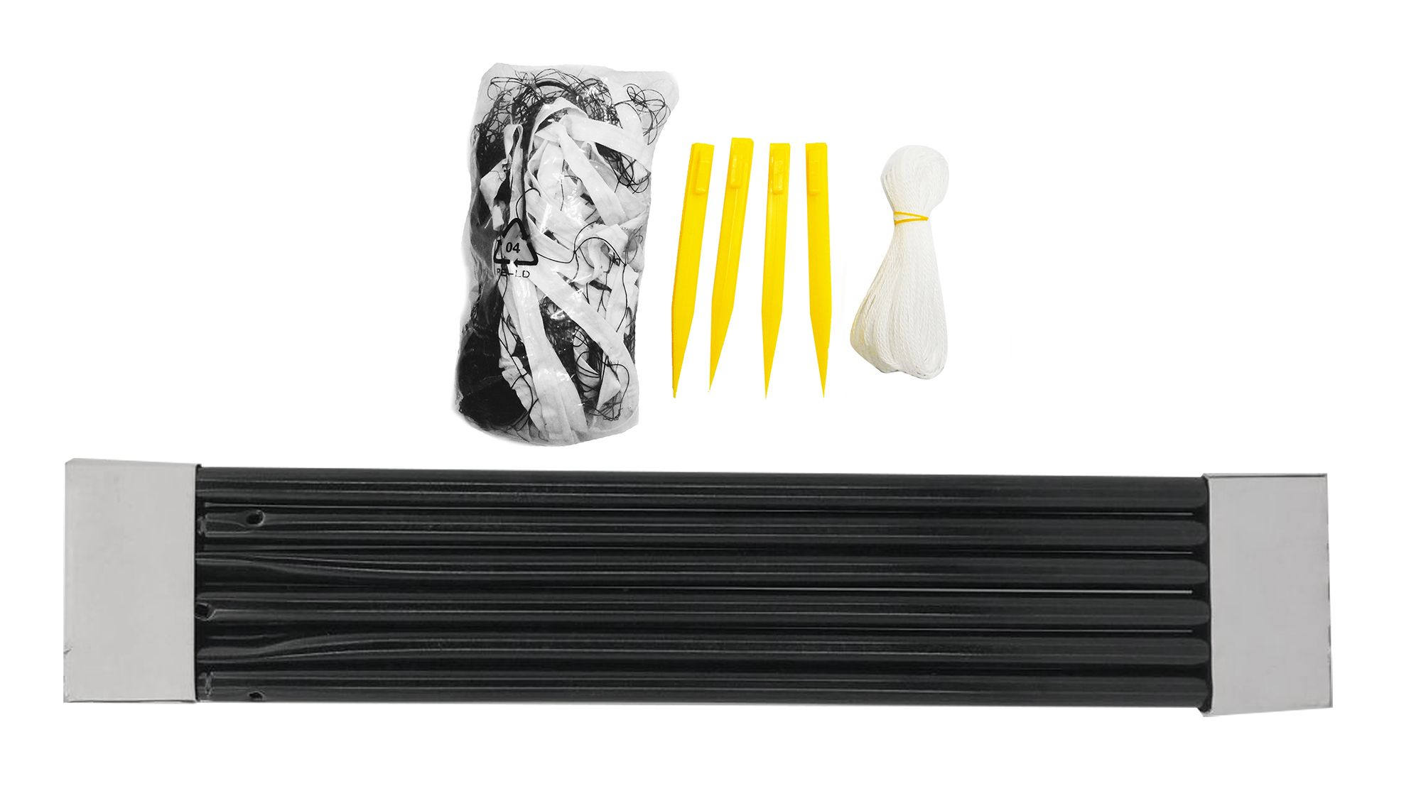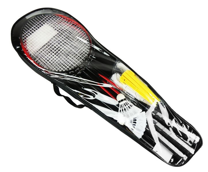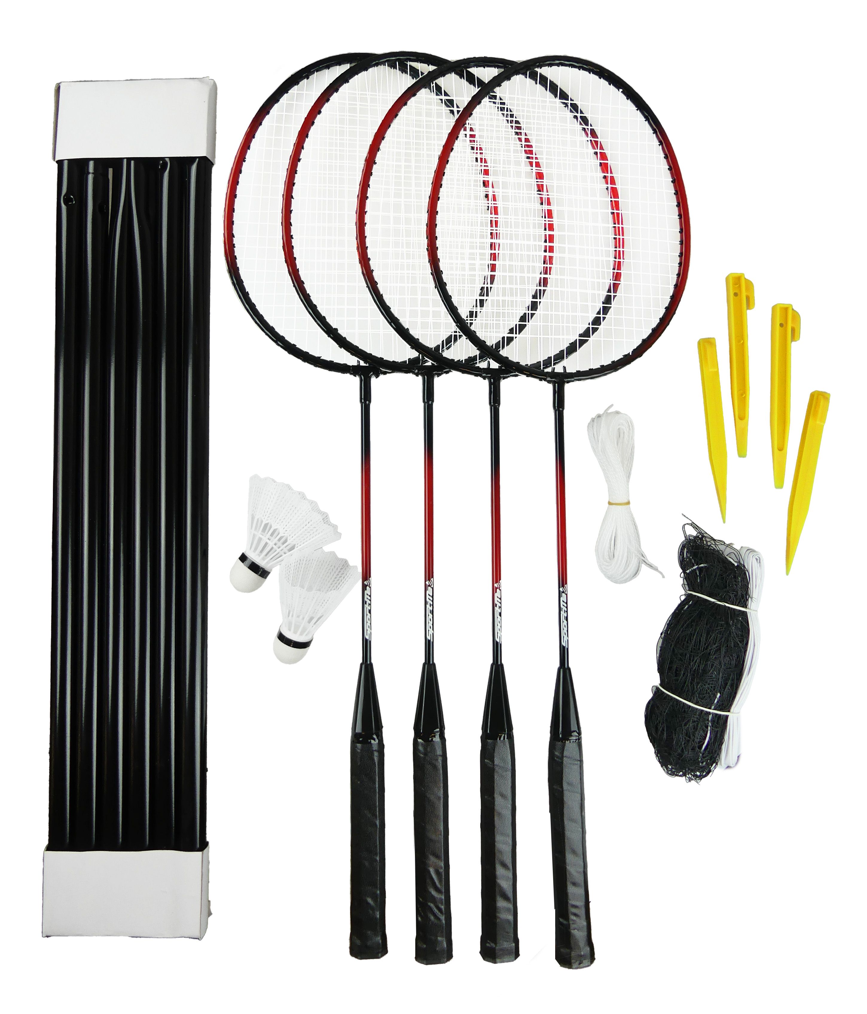 Ett komplett set för badminton från SportMe. Detta set innehåller fyra rack i järn, två plastbollar, ett nät och en förvaringsväska. Utmana vänner och familj på en match i trädgården eller parken!
