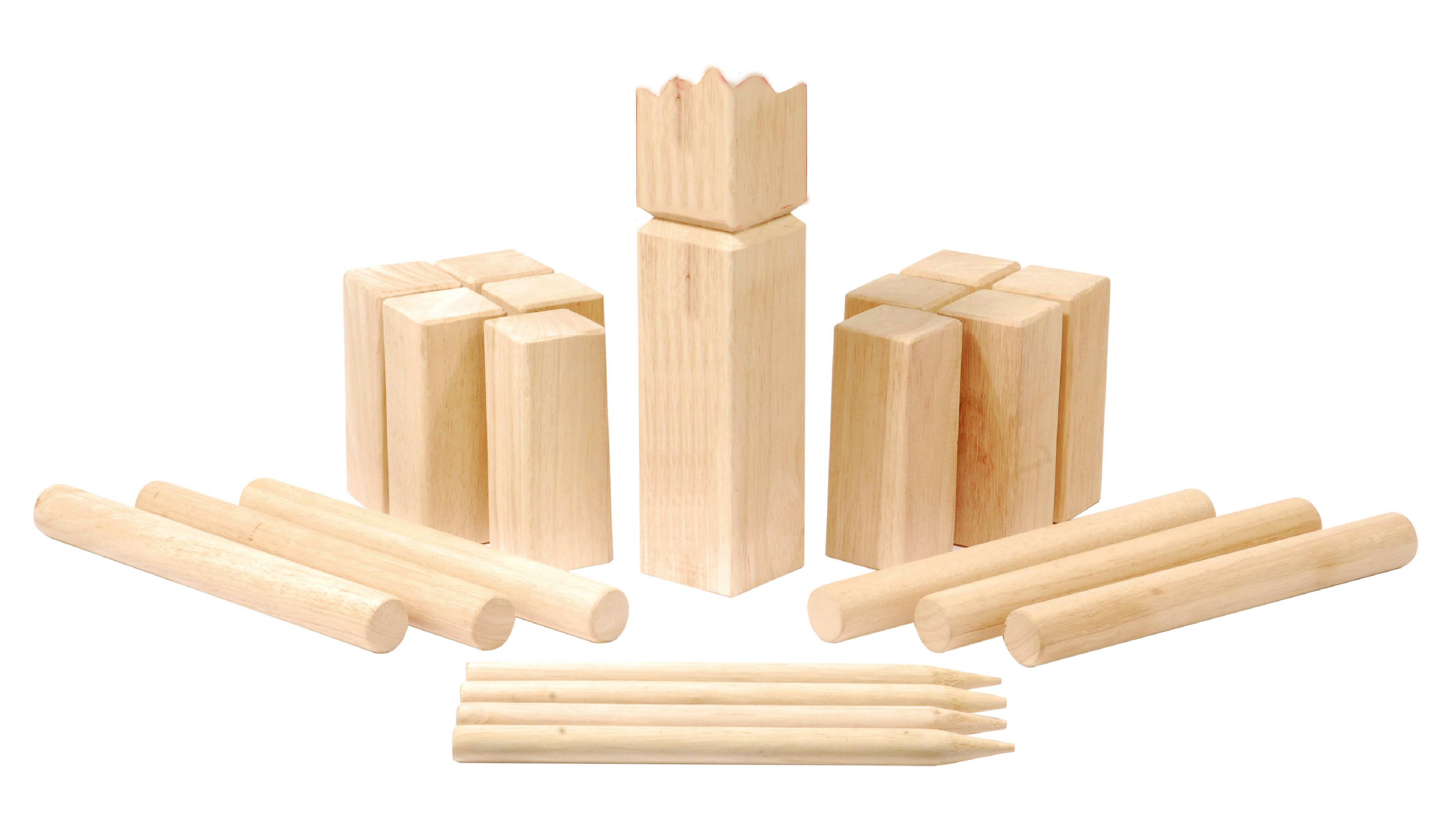 Klassiskt KUBB-spel i extra stabil konstruktion. Stor KUNG och rejäla kastpinnar.